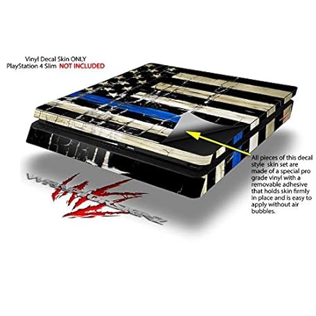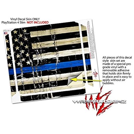 • Vinyl Decal Skin Wrap compatible with Sony PlayStation 4 Slim Console Painted Faded Cracked Blue Line Stripe USA American Flag (PS4 NOT INCLUDED)