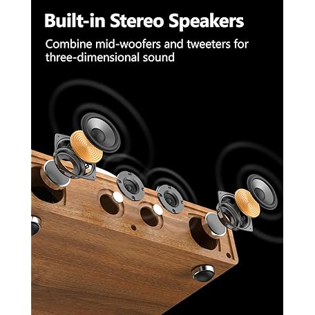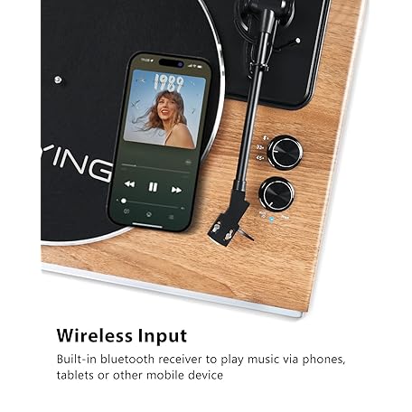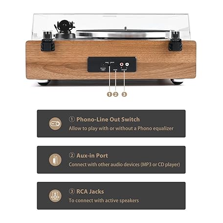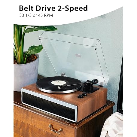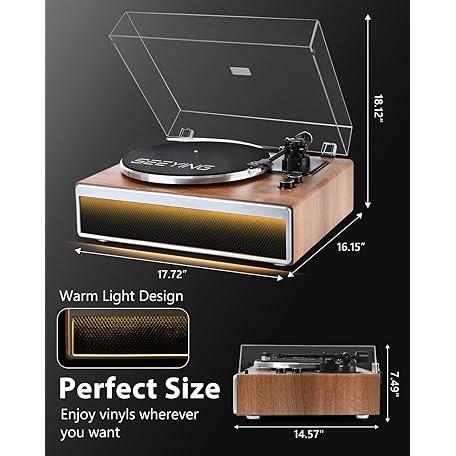 Thông tin sản phẩm Vinyl Record Player with Built in HiFi Speakers, Bluetooth Belt Drive Turntable for Vinyl Records with Magnetic Cartridge, Auto Stop and Warm Light Design