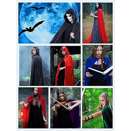 • VipMinga Velvet Hooded Cape Unisex Halloween Costume Cosplay Witch Vampire Hooded Cloak Costume for Women