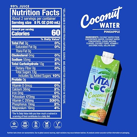 Thông tin sản phẩm Vita Coco Coconut Water Naturally Hydrating Electrolyte Drink Smart Alternative to Coffee Soda and Sports Drinks Gluten Free, Pineapple, 16.9 Fl Oz (Pack of 12), 202.8 Fl Oz
