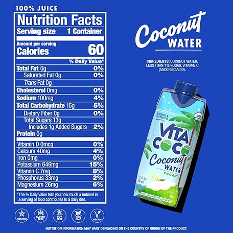 Sản phẩm Vita Coco Coconut Water, Pure Organic | Refreshing Coconut Taste | Natural Electrolytes | Vital Nutrients | 11.1 Oz (Pack Of 12) đang được bán với giá ưu đãi là $21.2441 tại nước Mỹ.