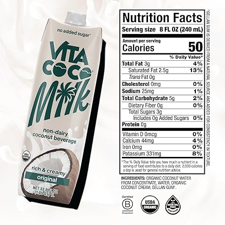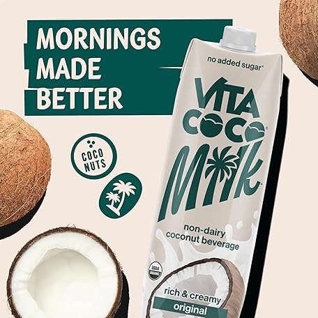 Thông tin sản phẩm Vita Coco Original Organic Coconut Milk, Plant Based, Dairy Free Milk Alternative - Gluten Free, Soy Free, and Unsweetened, No Added Sugar - Perfect Add to Cereal, Smoothies, Desserts - 33.8 Ounce (Pack of 6)