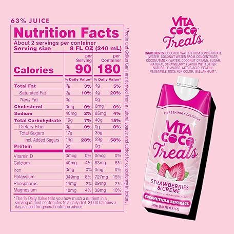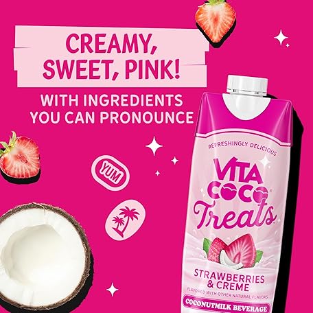 Vita Coco Treats Strawberries & Creme Coconut Milk Drink | Sweet, Refreshing, Treat | Cremey Pink Drink Alternative | 16.9 fl oz (Pack of 12)