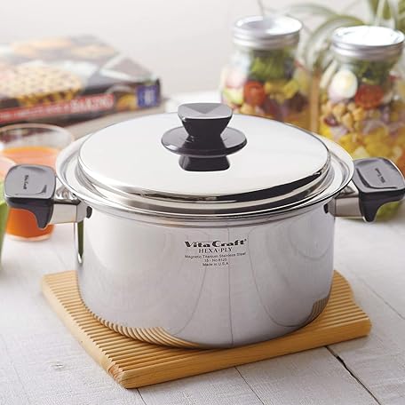 Thông tin sản phẩm Vita Craft 6125 Deep Type, Two-Handled Pot, Induction Compatible, Stainless Steel, Lid Included, Made in the USA, Hex Supply, 1.1 gal (4.0 L), Silver, 1.1 gal (4.0 L), Deep Type