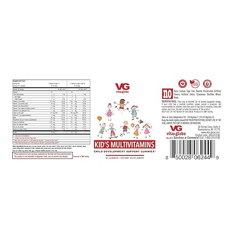 VITA GLOBE Kids Complete Multivitamin Gummies – with Vitamins A, C, D, E, B6 & B12 | Daily Immune, Growth & Wellness Support | Great-Tasting Chewable Supplement for Children – 120 Count (Pack of 2)