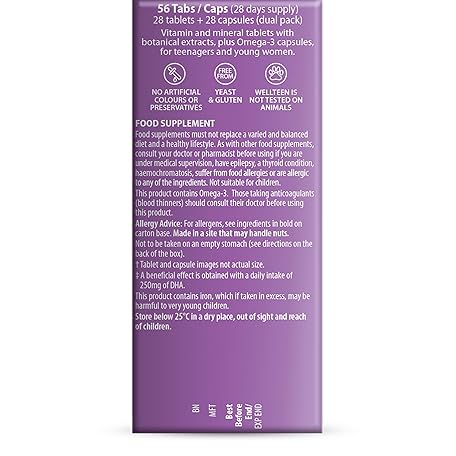 Sản phẩm Vitabiotics Wellteen Her Plus Omega-3 - Advanced Nutritional Support for Teenagers and Young Women Ages 13-19 - 56 Tablets and Capsules đang được bán với giá ưu đãi là $28.3291 tại nước Mỹ.