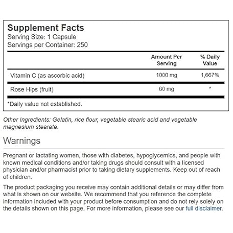 Sản phẩm Vitacost Vitamin C with Rose Hips - 1000 mg - 250 Capsules đang được bán với giá ưu đãi là $22.1052 tại nước Mỹ.