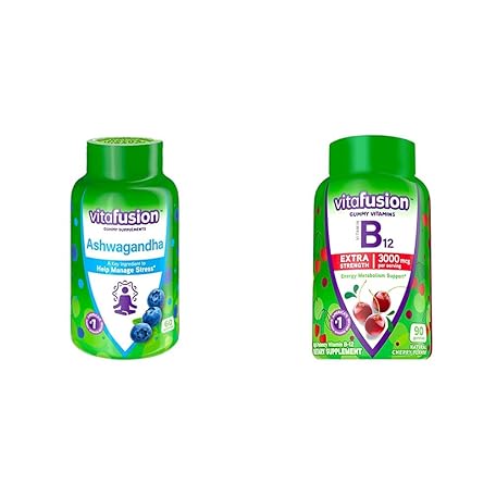 • Vitafusion Ashwagandha Gummies 60 Count Extra Strength Vitamin B12 Gummy Vitamins 90 Count