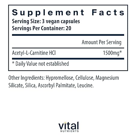 Thông tin sản phẩm Vital Nutrients Acetyl L-Carnitine 500mg | Brain, Memory, and Cognitive Support Supplement* | Vegan | Gluten, Dairy, Soy Free | Non-GMO | 60 Capsules