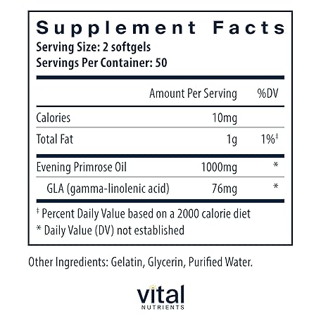 Thông tin sản phẩm Vital Nutrients Evening Primrose Oil 1000mg | Primrose Supplement for Women | GLA Omega-6 Fatty Acid for Skin and PMS Support* | Gluten, Dairy, Soy Free | Non-GMO | 100 Softgels