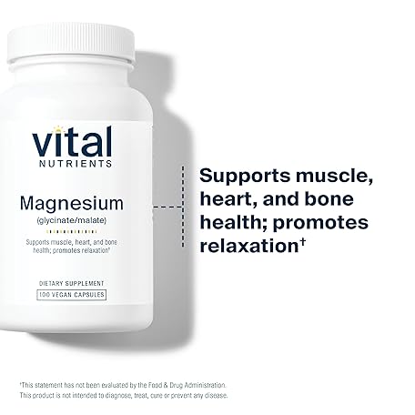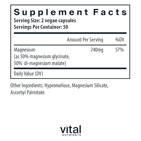 Thông tin sản phẩm Vital Nutrients Magnesium Glycinate + Malate | 120mg Vegan Magnesium Supplement for Women and Men | Muscle, Heart, Bone Support* | Promotes Relaxation | Gluten, Dairy and Soy Free | 100 Capsules