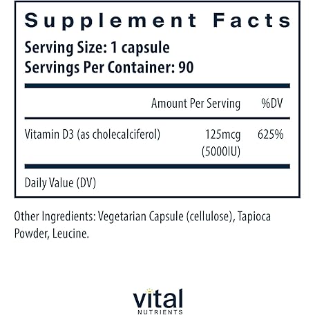 Thông tin sản phẩm Vital Nutrients Vitamin D 5000 IU | Vitamin D3 Supplement | Healthy Bones, Teeth, Muscles*| Cellular & Immune Function | Calcium Absorption | Gluten, Dairy and Soy Free | 90 Capsules