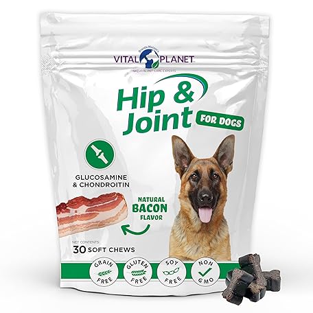 Thông tin sản phẩm Vital Planet - Hip and Joint Soft Chews for Dogs, with Glucosamine, MSM, and Collagen from Green-Lipped Mussel - 30 Bacon Flavored Soft Chews