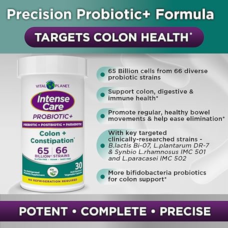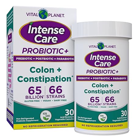Thông tin sản phẩm Vital Planet - Intense Care Colon & Constipation Probiotics Plus Organic Prebiotics, Postbiotics, Parabiotics, Complete 4-in-1 Health Supplement for Adults, 65 Billion CFU, 66 Strains, 30 ct