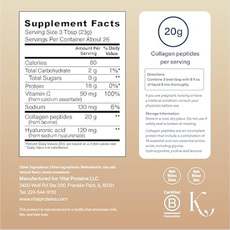 Thông tin sản phẩm Vital Proteins Collagen Peptides Advanced, Hydrolyzed Peptides with Hyaluronic Acid and Vitamin C - Vanilla Flavor Powder, 21oz