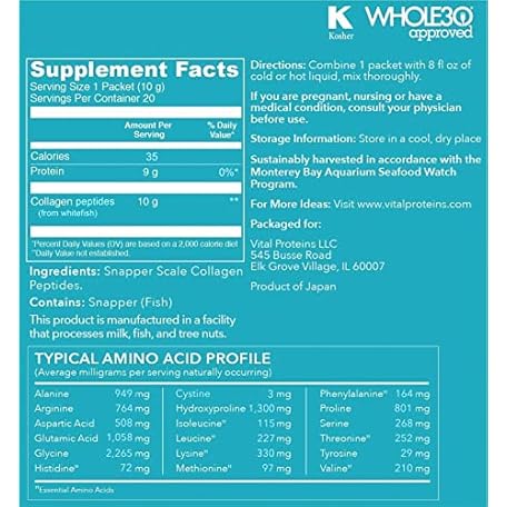 Sản phẩm Vital Proteins Marine Collagen Peptides Powder Supplement 7.8 oz Canister + Stick Packs (10 g) (Box of 20) đang được bán với giá ưu đãi là $65.2147 tại nước Mỹ.