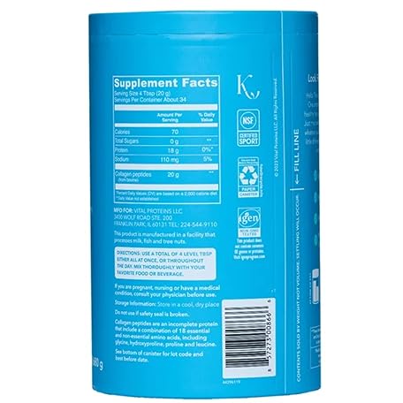 Thông tin sản phẩm Vital Proteins Natural Whole Nutrition Collagen Peptides - Pasture Raised, Grass Fed, Paleo Friendly, Gluten Free, Single Ingredient - 24 Ounce
