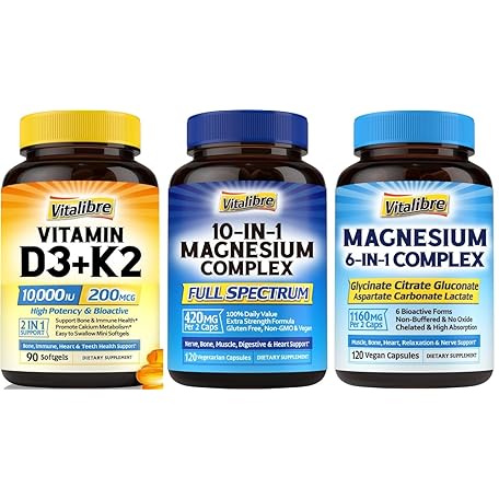 Sản phẩm Vitalibre Vitamin D3 K2 Supplement, 10000 IU D3 / 200 mcg K2 MK7 with Magnesium Complex 6 in 1 and Magnesium Complex 10 in 1 (3 Packs) đang được bán với giá ưu đãi là $32.5365 tại nước Mỹ.