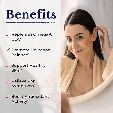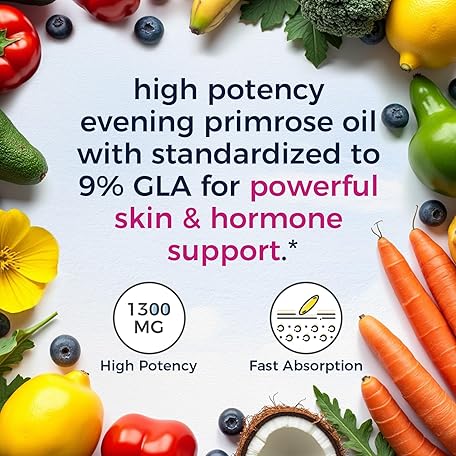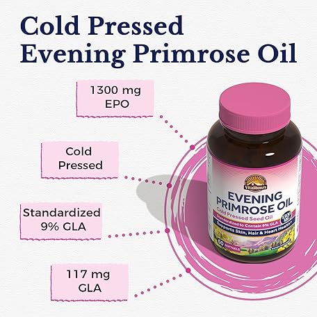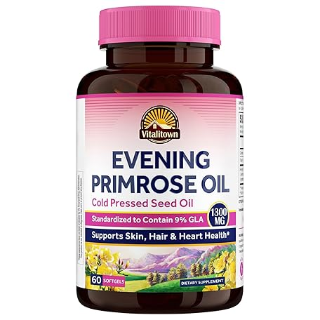 Vitalitown Evening Primrose Oil 1300mg, Cold-Pressed Seed Oil, Standardized 9% GLA (Gamma-Linolenic Acid), Healthy Skin & Hormonal Balance for Women, Non GMO, 60 Softgels