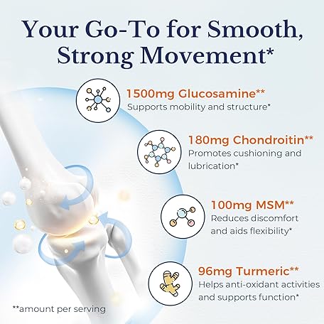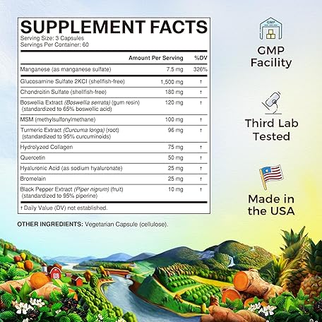 Thông tin sản phẩm Vitalitown Glucosamine Chondroitin MSM, Turmeric, Collagen, Hyaluronic Acid, Boswellia, Quercetin, 11-in-1 Formula, Glucosamine Sulfate 1500 mg, No Shellfish, Flexibility & Comfort, 180 Caps