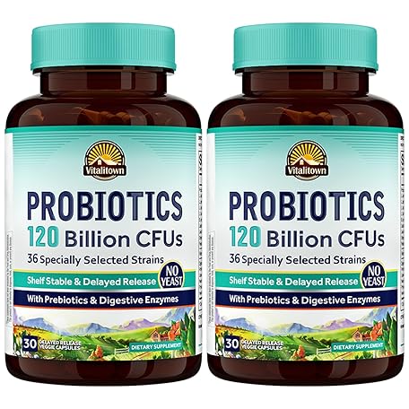 Sản phẩm Vitalitown Probiotics 120 Billion CFUs | 36 Strains, with Prebiotics & Digestive Enzymes for Men Women | Shelf Stable | Digestive & Immune Support | Vegan | 60 Delayed Release Veg Caps đang được bán với giá ưu đãi là $31.7844 tại nước Mỹ.