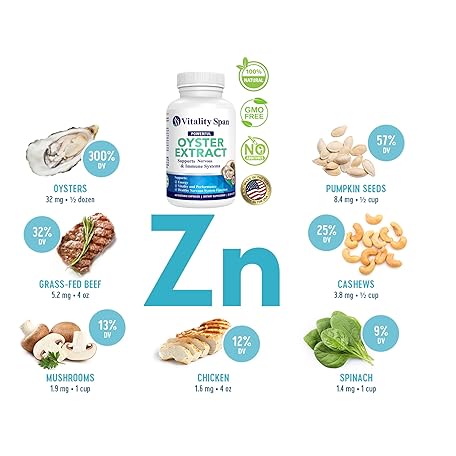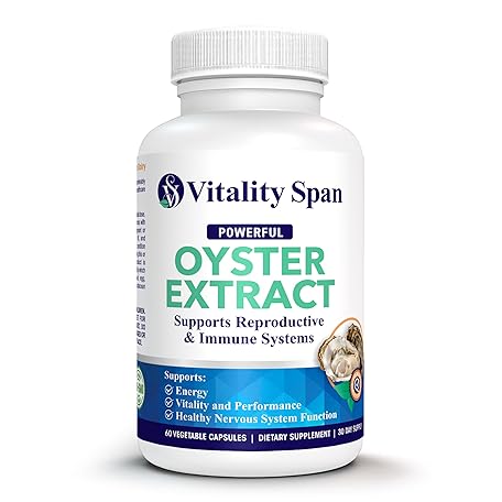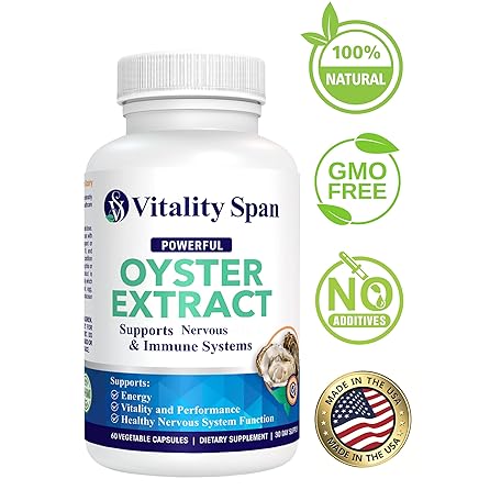 Thông tin sản phẩm Vitality Span Oyster Extract - Pure, Highly Concentrated Supplement for Men & Women – Supports Energy & Immune Boost; Zinc, Taurine, Amino Acids, and Vitamins, 500 mg, 60 Veg Capsules, Made in USA