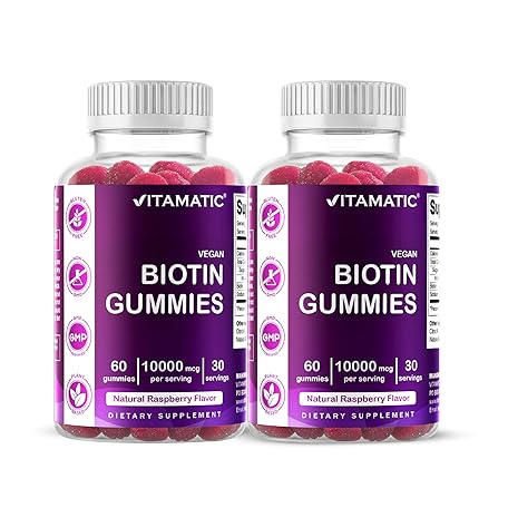 Sản phẩm Vitamatic Biotin Gummies 10,000 mcg for Stronger Hair, Skin & Nails - 60 Vegan Gummies - Also Called Vitamin B7 (2 Bottles) đang được bán với giá ưu đãi là $20.6991 tại nước Mỹ.