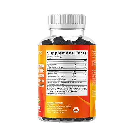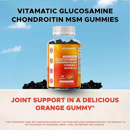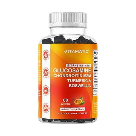 Vitamatic Extra Strength Glucosamine Chondroitin Gummies with MSM, Turmeric & Boswellia – 60 Pectin-Based Gummies Advanced Joint Support Formula – Sugar-Free, Non-GMO, Gelatin-Free