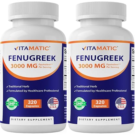 • Vitamatic Fenugreek Capsules Extra Strength 3000 mg Equivalent Per Serving (from 10:1 Extract 300 mg) - Trigonella Foenum-Graecum - Methi Seeds Powder Pills - 320 Vegetarian Capsules - 2 Pack