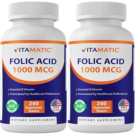 Thương hiệu Vitamatic là cái tên nổi tiếng được rất nhiều khách hàng trên thế giới chọn lựa. Với kiểu dáng đẹp mắt, sang trọng, sản phẩm Vitamatic Folic Acid 1000 mcg (1 mg) – 240 Vegetarian Tablets (Pack of 2) 1667 mcg DFE – Vitamin B9 for Prenatal, Heart & Cellular Health là sự lựa chọn hoàn hảo nếu bạn đang tìm mua một món cho riêng mình.