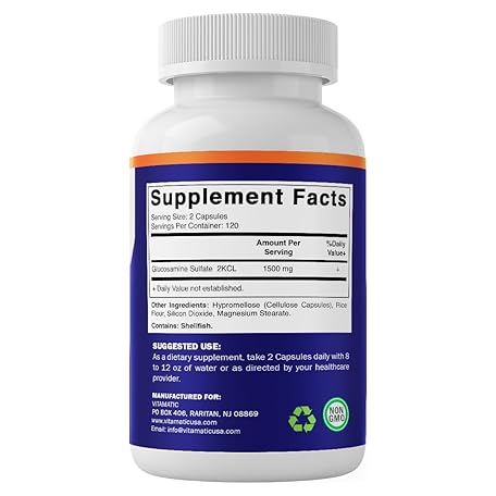 Thông tin sản phẩm Vitamatic Glucosamine Sulfate Supplement, 1500mg, 120 Servings, 240 Capsules