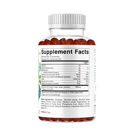 Thông tin sản phẩm Vitamatic Hydrolyzed Collagen Gummies with Vitamin C, Zinc and Biotin, 200 mg - Healthy Skin Support - 60 Gummies