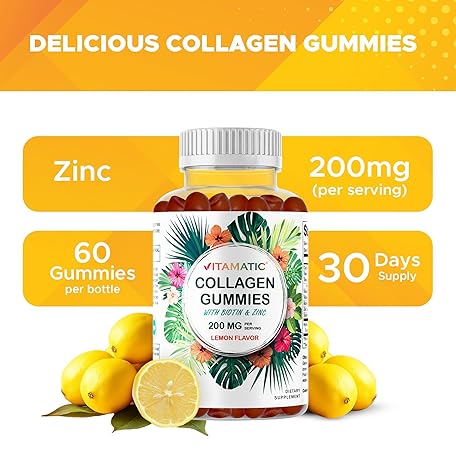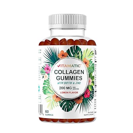 Sản phẩm Vitamatic Hydrolyzed Collagen Gummies with Vitamin C, Zinc and Biotin, 200 mg - Healthy Skin Support - 60 Gummies đang được bán với giá ưu đãi là $10.8891 tại nước Mỹ.