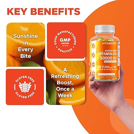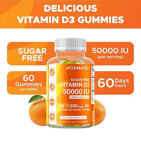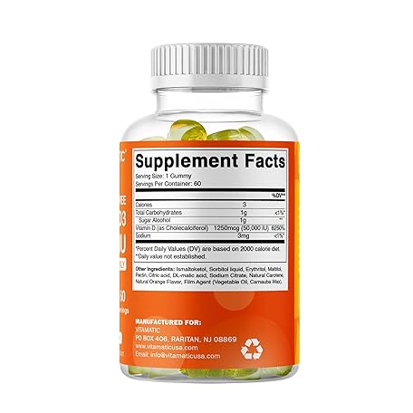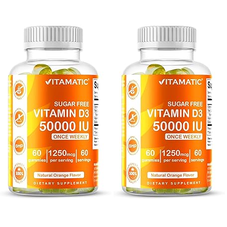 Thông tin sản phẩm Vitamatic Sugar Free Vitamin D3 50,000 IU Weekly Supplement – 60 Pectin-Based Gummies High-Potency Vitamin D for Bone, Teeth & Immune Support (Pack of 2)