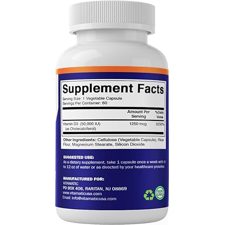 Thông tin sản phẩm Vitamatic Vitamin D3 50,000 IU (as Cholecalciferol), Once Weekly Dose, 1250 mcg, 60 Veggie Capsules 1 Year Supply, Progressive Formula Helping Vitamin D Deficiencies (60 Count (Pack of 1))
