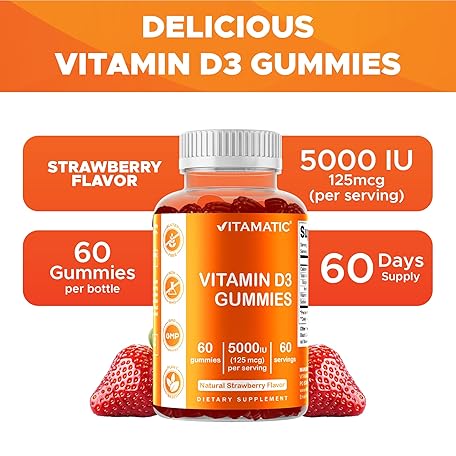 Sản phẩm Vitamatic Vitamin D3 Gummies – 5000 IU Per Gummy – 60 Gummies (Pack of 2) đang được bán với giá ưu đãi là $19.6091 tại nước Mỹ.