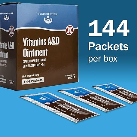 Vitamin A&D Ointment For Baby Diaper Rashes - 144 Packets of A and D Ointment for Adults, Babies, and Seniors - Skin Protectant Cream