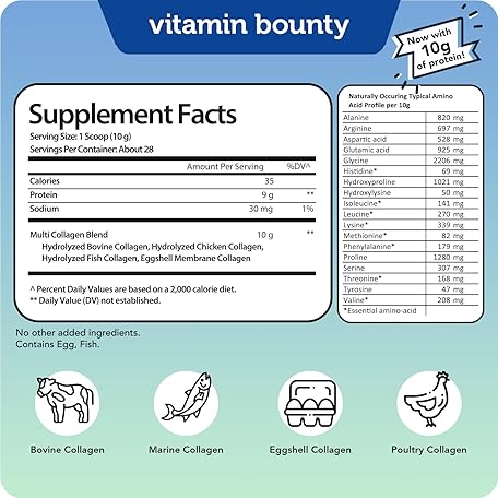 Thông tin sản phẩm Vitamin Bounty Multi Collagen Complex - Hydrolyzed Collagen Peptides Types I, II, III, V & X - Supports Skin Elasticity, Joint Health, Hair & Nail Growth - 28 Servings