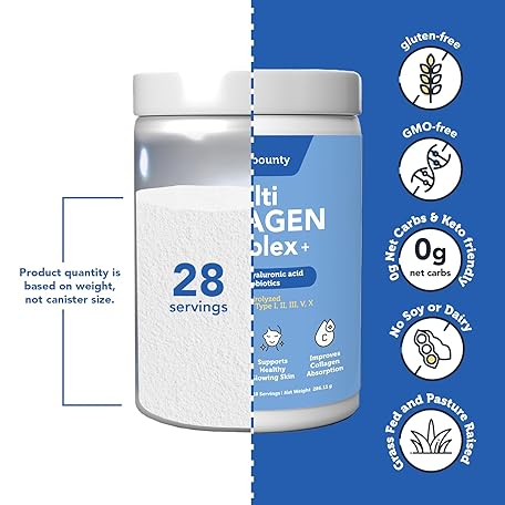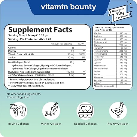 Thông tin sản phẩm Vitamin Bounty Multi Collagen Peptides Powder for Men & Women (Complex Plus) - 5 Types Hydrolyzed Collagen Protein - Probiotics, Vitamin C & Hyaluronic Acid - Grass Fed Bovine Supplements, 28 Servings