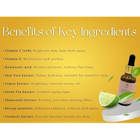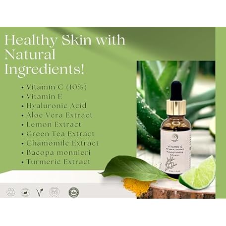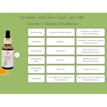 Thông tin sản phẩm Vitamin C Face Serum - Brightening, Hydrating, Glowing Skin with Hyaluronic Acid, Turmeric, Vitamin E, Green Tea Extract, Anti Aging Facial Serum for Fine Lines & Wrinkles – 1 Fl Oz