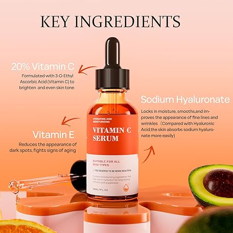 Thông tin sản phẩm Vitamin C Serum For Face-Anti Aging & Wrinkle Facial Serum With Vitamin C,Sodium Hyaluronate,Vitamin E And More,Skin Brightening Serum For Dark Spots,Fine Lines & Dull Skin,1 Fl Oz