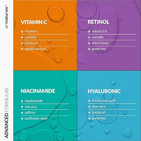 Thông tin sản phẩm Vitamin C Serum Skin Care 4-Piece Set: Includes Retinol, Hyaluronic Acid & Niacinamide – Anti-Aging, Skin Brightening, Hydrating, Wrinkle Reduction, Dark Spot Corrector – 3-Month Supply – artnaturals