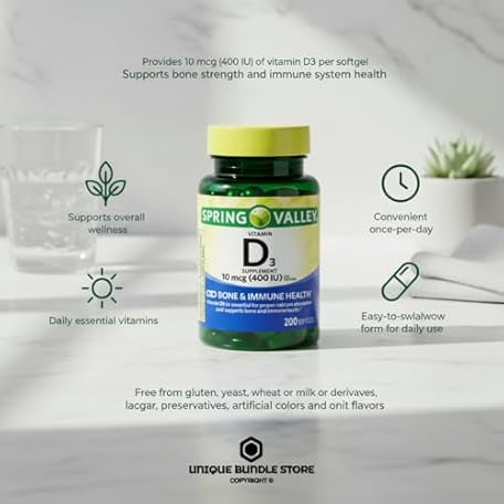 Thương hiệu Unique Bundle Store là cái tên nổi tiếng được rất nhiều khách hàng trên thế giới chọn lựa. Với kiểu dáng đẹp mắt, sang trọng, sản phẩm Vitamin D3 10 mcg (400 IU), 200 Softgels - Dietary Supplement (Pack of 1) là sự lựa chọn hoàn hảo nếu bạn đang tìm mua một món cho riêng mình.