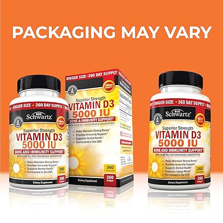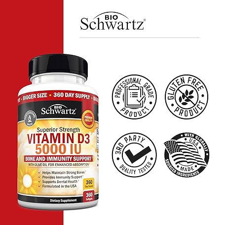 Thương hiệu BioSchwartz là cái tên nổi tiếng được rất nhiều khách hàng trên thế giới chọn lựa. Với kiểu dáng đẹp mắt, sang trọng, sản phẩm Vitamin D3 5000 IU (125 mcg) Natural Immune Support Supplement, Bone Strength, Healthy Muscle Function, with Olive Oil for Highest Absorption, Gluten Free & Non-GMO, 1 Year Supply, 360 Softgels là sự lựa chọn hoàn hảo nếu bạn đang tìm mua một món cho riêng mình.