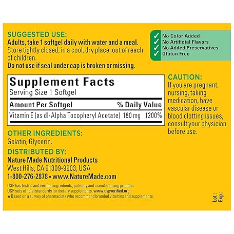 Sản phẩm Vitamin E 180 mg (400 IU) dl-Alpha Softgels, 180 Count for Antioxidant Support đang được bán với giá ưu đãi là $15.2491 tại nước Mỹ.