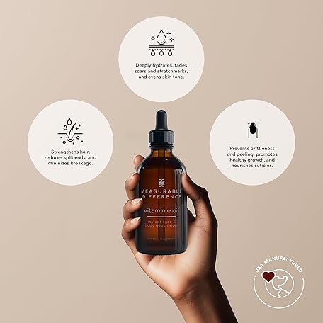 Thương hiệu Measurable Difference là cái tên nổi tiếng được rất nhiều khách hàng trên thế giới chọn lựa. Với kiểu dáng đẹp mắt, sang trọng, sản phẩm Vitamin E Oil 100% Pure & Organic | Instant Face & Body Moisturizer Blend with Sunflower seed, Coconut and Jojoba oil for Skin, Hairs & Nails – Deep Hydration & Anti-Aging, 4fl Oz là sự lựa chọn hoàn hảo nếu bạn đang tìm mua một món cho riêng mình.