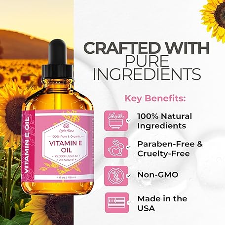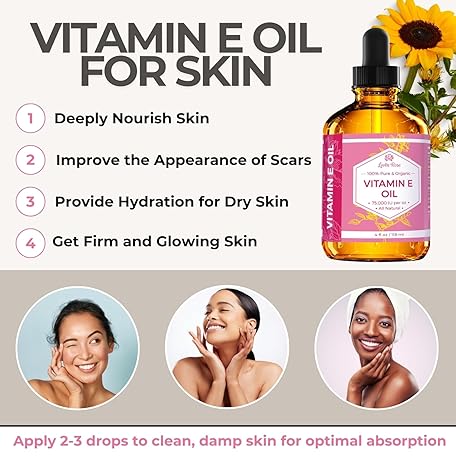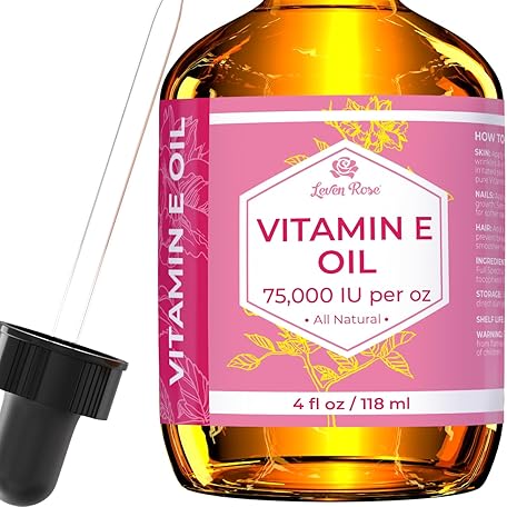 Thông tin sản phẩm Vitamin E Oil by Leven Rose 75,000 IU per oz 100% Natural, Organic, Pure Vitamin E Oil for Skin, Face, Hair, Nails, and Scars, 4 oz