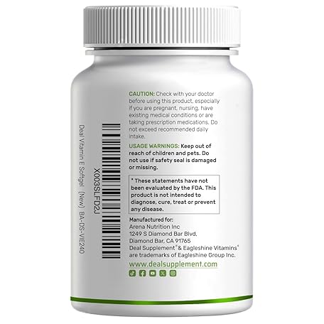 Thương hiệu DEAL SUPPLEMENT là cái tên nổi tiếng được rất nhiều khách hàng trên thế giới chọn lựa. Với kiểu dáng đẹp mắt, sang trọng, sản phẩm Vitamin E Supplements, 1,000 IU Per Serving, 240 Softgels – Extra Strength Antioxidant Protection – Bioavailable Stable Form – Skin, Heart, Brain, & Immune Support – Non-GMO là sự lựa chọn hoàn hảo nếu bạn đang tìm mua một món cho riêng mình.