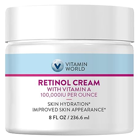 Sản phẩm Vitamin World Retinol Cream 100,000 IU 8 oz., Gentle Retinol Night Cream for Face with Retinyl Palmitate & Dual Vitamin E & Coconut Oil, Face Moisturizer, Anti-Aging Wrinkle Cream đang được bán với giá ưu đãi là $20.5683 tại nước Mỹ.