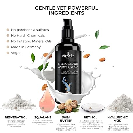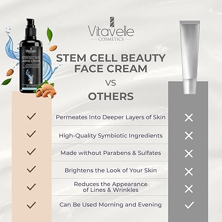 Thông tin sản phẩm VITAVELLE Stem Cell Face Cream - Hyaluronic Acid, Shea Butter & Jojoba - Anti-Wrinkle, Hydrating Moisturizer for Smooth Skin